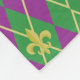 Un patrón de arlequín de verde y púrpura se transforma en un estilo lúdico con una superposición de contornos de diamante dorado y fleur de lis, creando un patrón divertido y colorido perfecto para cualquier celebración del Mardi Gras influenciada por Nueva Orleans.