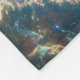 El remanente de la supernova Cassiopeia A (Cas A), ubicado a 11.000 años luz de la Tierra en la constelación Cassiopeia. La imagen muestra colores vivos y estructuras complejas. Cas A es el remanente más joven conocido de una estrella masiva y en explosión en nuestra galaxia. En el exterior del remanente hay cortinas de material que parecen naranjas y rojas debido a la emisión de polvo caliente. Esta marca es donde el material expulsado de la estrella explotada se adentra en el material circundante. El interior de esta cáscara externa está formado por filamentos moteados de rosa brillante con grumos y nudos. Esto representa material de la propia estrella, y probablemente brilla debido a una mezcla de varios elementos pesados y emisión de polvo. El material estelar también se puede ver como espumas más finas cerca del interior de la cavidad. Un bucle representado en verde se extiende por el lado derecho de la cavidad central.