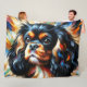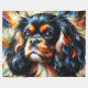 Celebrate the regal charm of the Black and Tan Cavalier King Charles Spaniel with this vibrant acrylic style art print. Known for their noble lineage and affectionate nature, this toy breed is captured here in a bold and modern palette. The artwork features the classic "King Charles" markings, including a rich raven black coat highlighted by warm mahogany tan accents. Every detail is rendered in a textured, high gloss acrylic aesthetic that adds depth to the design. This piece is perfect for adding a pop of color to any room, whether you are a long-time Cavalier parent or looking for a unique gift for a dog lover.