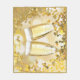 Curl con una celebración de gafas de champán y una manta de lana de confeti. Dos copas de champán con champán burbujeante para celebrar ocasiones especiales en una acogedora manta de gafas.