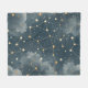 Mystical constellation pattern blanket featuring golden stars, celestial lines, and dreamy clouds across a dark night sky background. Ideal for astrology lovers, stargazers, astronomy fans, spiritual seekers, and anyone who loves cosmic and celestial style.