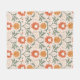 A seamless pattern featuring stylized sun faces, blooming orange flowers, curling clouds, and leafy green vines on soft beige background.