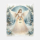A serene celestial angel stands beneath a snowy archway of evergreens and winter florals, gently cradling a glowing lantern that spills soft golden light across her gown. Behind her, a dusky blue forest of snow-covered trees shimmers with falling flakes and tiny sparks of light, creating a peaceful, storybook atmosphere. Delicate lace details, flowing sleeves, and a halo-like crown of foliage give this winter angel illustration an ethereal, cottagecore charm that feels both nostalgic and on-trend. Soft blue and warm cream tones blend into a dreamy palette that suits spiritual holiday imagery, quiet reflection, and year-round messages of hope. This design is ideal anywhere a touch of calm, light, and heavenly beauty is desired. AI generated artwork.