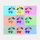Cerezas coloridas: azul, azul claro, naranja, amarillo, rosa, magenta, morado, violeta, verde claro, hojas verdes, verde oliva - creado al estilo Pop Art. Diseño ligero y optimista. El rol del optimismo en el diseño - para ayudar a crear una cultura de optimismo.