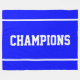 This sporty design features white athletic CHAMPIONS text against bright royal blue background with sleek white edge stripes. The colors and text in this design can be personalized.