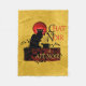 La manta con "Gato negro y café negro" está basada en los clásicos posters negros de Théophile Steinlen para el club "Le Chat Noir". Este diseño presenta su famoso gato negro sentado en una pared de ladrillo cubierto de hiedra con una taza grande de café. El vapor y los corazones están saliendo de la taza de café y una brillante luna llena roja.