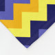 Una pequeña manta de lana con un diseño tierno y sombrío de chevrones en azul, amarillo y oro.