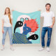 Una chica extranjera asusta manta surrealista con un ilustracion vectorial de una chica alienígena de piel azul, cabello rojo y ojos brillantes, rodeada por sus amigos imaginarios que son fantasmas lindos negros y blancos. Esta extraña obra de arte psicodélica resultará atractiva para una persona a la que le gusta el arte oscuro, raro y extraño y que también es genial para Halloween.