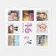 Un regalo para el cumpleaños 16 de una chica, celebrando su vida con un collage de 8 de sus fotos. Plantillas para un nombre, edad 16 y fecha. Fecha de nacimiento o fecha del aniversario. Letras rosadas y violetas. Fondo de color blanco.