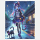 Esta gran manta de lana está lista para ser usada para acurrucarse y calentarse. Chica de juegos de anime lindo caminando por una calle con su gato favorito.