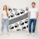 Esta bonita manta de mimbre con temática de baloncesto presenta imágenes realistas de baloncesto que tienen paneles alternos en negro, blanco y gris dispuestos en un patrón espejado - la frase "La cancha de baloncesto es mi lugar feliz" en un tipo de letra casual escrita a mano en franjas grises entre las filas anguladas de baloncesto - el nombre del atleta puede ser personalizado en una banda de color gris de ancho completo y similar - fondo personalizable blanco - de katz_d_zynes