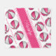 Esta bonita manta de gala con temática de baloncesto presenta imágenes realistas de baloncesto que tienen paneles rosa y blanco alternados dispuestos en un patrón reflejado anglorizado - la frase "La cancha de baloncesto es mi lugar feliz" en tramos rosados entre las filas angladas de baloncesto - el nombre del atleta se puede personalizar en una franja de color rosa de ancho total similar - el fondo es personalizable blanco - por katz_d_zynes