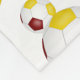 Este colorido equipo de fútbol colorea manta de pulpa para niños o chicas presenta un patrón de balones de fútbol de tamaño variado que se reparten por todas partes - los paneles negros en las bolas de fútbol se han coloreado marrón y oro - personalizar con el nombre del futbolista y número de monograma o camiseta - de katz_d_zynes