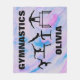 ¡Hermosos movimientos de color! Este diseño dice gimnasia y también se personaliza con el nombre de tu gimnasta. Cuenta con 4 hermosas siluetas de gimnasta cada una haciendo un evento diferente en gimnasia.
