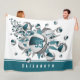 Esta manta de pulpa con temática de baloncesto de chica fresco presenta una "explosión" de baloncesto verde azulado, gris y blanco de diferentes tamaños y formas estrella grises y verde azuladas - la estrella verde azulada tiene un patrón minúsculo de puntos de polka blancos - personalizar con el nombre del jugador y número de camiseta - la banda de color verde azulada en el borde inferior es personalizable - katz_d_zynes