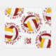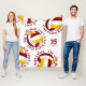 Esta fresca manta de pulpa con tema de voleibol tiene 5 pelotas de futbol, oro y voleibol blanco arregladas al azar con el texto "La cancha de voleibol es mi lugar feliz" en oro rodeando cada voleibol con una divertida fuente tipográfica, todo en un fondo blanco - su nombre y número de camiseta son personalizable - por katz_d_zynes