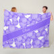 Esta manta de pulpa con temática de softball presenta un patrón ordenado al azar de bolas de softball púrpura de tamaño variable y realistas con puntos blancos, con una sombra selectiva para una apariencia única en 3D - personalice su nombre con un sofisticado tipo de letra manuscrita en una franja de color violeta de ancho total y negrita - fondo blanco y banda de color púrpura son personalizables - por katz_d_zynes