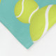 Esta bonita manta de pulpa con temática de tenis para chicas presenta un patrón de pelotas de tenis arreglado al azar de diferentes tamaños giradas en cada sentido sobre un fondo verde azulado ligero - nombre del jugador con un tipo de letra "autógrafa" y un gran monograma con un tipo de letra de letra varsity son personalizables - por katz_d_zynes