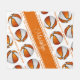 Esta bonita manta de mimbre con temática de baloncesto presenta imágenes realistas de baloncesto que tienen paneles naranjas y blancos alternados dispuestos en un patrón espejado - la frase "La cancha de baloncesto es mi lugar feliz" en un tipo de letra casual escrita a mano en franjas naranjas entre las filas de baloncesto - el nombre del atleta puede ser personalizado en una banda de naranja de ancho completo similar - es personalizable blanco - de katz_d_zynes