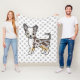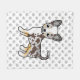 El original ilustracion personalizado de Destei de un manto de chocolate suave abrigo de raza Chihuahua. El fondo tiene un patrón de huellas de perros grises.