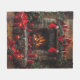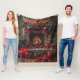 Beautiful image of a Christmas stone fireplace with red stockings hanging from the mantle, pretty glowing red candles, pinecones and wrapped Christmas gifts. Lovely fleece blanket can be customized with any text, for your self or holiday giving.