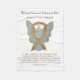 El arte presenta el "Ángel de la cinta de oro para la conciencia sobre el cáncer" para apoyar la conciencia sobre el cáncer infantil. El arte muestra a un ángel de la guarda sosteniendo una cinta de reconocimiento de oro y el poema de "Lo que el cáncer no puede hacer" gira a su alrededor. Las palabras del poema dicen "Lo que el cáncer no puede hacer, el cáncer es tan limitado... No puede paralizar el amor. No puede destruir la esperanza. No puede corroer la fe. No puede destruir la paz. No puede matar la amistad. No puede suprimir recuerdos. No puede silenciar el coraje. No puede invadir el alma. No puede robar la vida eterna. No puede conquistar el espíritu. -Autor desconocido" Haz mantas de pulpa para tu personalizado o como regalo para un ser querido. Añade tus propias palabras o imágenes a esta manta suave de quimioterapia para recibir regalos especiales de la cinta contra el cáncer.