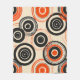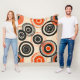 Esta obra de arte presenta un sorprendente patrón de círculos concéntricos de diferentes tamaños, dispuestos a través de un fondo de crema neutro. El diseño incorpora audaces tonos negros y vibrantes naranjas, creando un fuerte contraste visual que inmediatamente capta la atención. Los círculos están en capas e interconectados, con algunas líneas dibujadas a mano, lo que añade un aire dinámico y ligeramente irregular a la composición. La repetición de formas circulares y el esquema de color retro evocan un sentido de diseño moderno de mediados de siglo, dando a la pieza una calidad atemporal y lúdica.