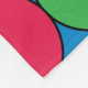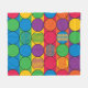 Una manta con mi llamativo y colorido diseño de círculos de rayas en bandas multicolores de púrpura, naranja, rojo, amarillo, verde y turquesa.