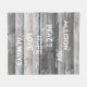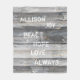 Si usted ama rústico, usted amará esta manta inspiradora del paño grueso y suave. Las características del este diseño un fondo de madera del tablón del shiplap para la tipografía blanca moderna en su nombre a personalizar y la cita inspiradora "esperanza de la paz de la alegría aman siempre."