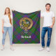 Insignia escudo del clan MacDonald rodeada por una correa y hebilla sobre fondo tartán. Texto personalizado.