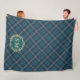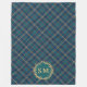 Classic Monogram Gold Wreath Green Tartan Plaid Fleece Blanket - A preppy, classic, and timeless Christmas winter blanket with golden monogram holly berry wreath and plaid elements in navy and hunter green with gold tone and burgundy red accents. The tartan pattern adds a timeless, classy touch. Perfect for an Old Money themed Christmas gift for him or for her with a classic, vintage and luxurious feel. If you like grandpa core, vintage style this is a great Holiday blanket. Personalize this Christmas holiday blanket with your own initials or monogram. Makes a great holiday gift!