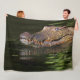 Esta manta de lana tiene una imagen realmente fría de un cocodrilo encima.