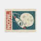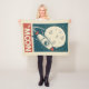 Un ilustracion retro de la luna con un barco de cohetes