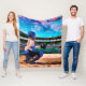 El colector y el estadio del softball que pintan al chica hermoso joven en deporte azul uniforman. Perfeccione para los jugadores y los fans de softball. Usted puede personalizarlo con su nombre o dejarlo en blanco