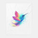 Colibrí luminoso, irrisorio, exótico volador sobre fondo blanco, pintado con pintura multicolor, acuarela. Colibrí arcoiris.