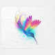 Colibrí luminoso, irrisorio, exótico volador sobre fondo blanco, pintado con pintura multicolor, acuarela. Colibrí arcoiris.