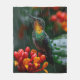 Un colibrí vibrante que exhibe un plumaje brillante se perfila sobre una flor brillante durante una suave lluvia. La belleza y la serenidad de la naturaleza se capturan en este momento colorido y vívido bajo la lluvia.