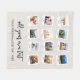 Crea tu propia manta personalizada de collage de fotos con 12 de tus fotos favoritas y texto personalizado para un montaje de fotos al estilo de un libro de recortes.