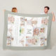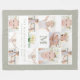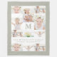 Collage de fotos clásicas y de moda con monograma, año y nombre, manta de salvia gris.