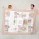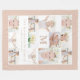 Collage fotográfico clásico y de moda con monograma, año y nombre, manta pastel neutra.