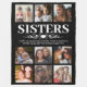 Cuidada manta personalizada de hermana con un elegante fondo negro que se puede cambiar a cualquier color, 9 cuadros cuadrados y una dulce cita de hermana de familia.