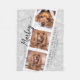 Celebre la vida de su mejor amigo con esta manta de lana de mascota, elegante y única. Esta hermosa manta de collage de fotos es el regalo perfecto para que usted y sus seres queridos traigan recuerdos felices de su adorable perro, gato, conejillo de indias, conejo, hurón u otro animal mascota. Este diseño presenta un collage de 3 fotos con un estilo de cabina de fotos (preferiblemente añadir fotografías con una orientación horizontal); nombre de fecha y mascota en una tipografía de estilo manuscrito negro. También muestra la cita: "un gran trozo de mi corazón vive en el cielo" en la capital sans serif gris fuente decorado con bonitos corazones rosados. Esta manta conmemorativa tiene un sencillo patrón de huellas de pata y fondo gris claro.