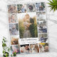 Celebra a tu familia o recuerdos bodas con esta hermosa manta de lana de collage. Este diseño incluye una gran foto vertical central, junto con dos fotos verticales más pequeñas y 12 imágenes cuadradas al estilo de Instagram. Añade tu nombre en gris. Las palabras "Amor - Felicidad" también se pueden cambiar o dejar tal cual. Las plantillas sencillas facilitan la personalización. Elija su propio tamaño de manta. "Personalizar más" para hacer cambios más detallados.