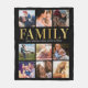 Funda de diseño de diseño con un fondo negro elegante que se puede cambiar a cualquier color, 9 fotos cuadradas, la palabra "FAMILIA" en una elegante letra de gradiente de Relieve metalizado de oro falso, además de la tuya, de tus compañeros y nombres de niños.