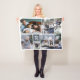 Acompáñese bajo sus recuerdos familiares o bodas con esta hermosa manta de collage de fotos en blanco con un cuadrado gris-azul detrás de su monograma. El diseño incluye 7 fotografías: 2 horizontales grandes, 2 verticales medianos y 3 cuadrados de estilo Instagram más pequeños. Añada su letra de monograma en cursiva. Las plantillas sencillas facilitan la personalización. "Personalizar más" para hacer cambios más detallados.