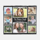 Celebra a tu familia con esta manta negra personalizado que incluye un collage de 8 fotos de tu familia, mascotas, recuerdos, etc., con marcos blancos, tu nombre de familia con un guión blanco y los nombres de todos en una simple tipografía blanca.