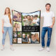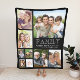 Una manta de personalizado de fotos para mantener a tu familia. Personalice con nueve fotos y agregue sus nombres en una tipografía blanca simple contra un fondo negro. Los colores del fondo y del texto se pueden cambiar editando en la herramienta de diseño.