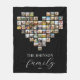 Crea tu propia manta de collage de fotos de la familia de personalizados con 63 de tus fotos favoritas en un diseño de cuadrícula de fotos en forma de corazón. Personalice el nombre de la familia en la tipografía moderna para un regalo de fotografía personalizado o decoración en casa.