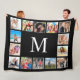 Crea tu propio collage de fotos personalizado de 14 fotos, manta de lana con tus imágenes personalizados sobre un sencillo fondo negro moderno. La cara de la manta de lana también incluye su monograma. Añade tus fotos, diseños o obras de arte favoritas para crear algo realmente único.