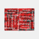 Tonos cálidos de niño rojo brillante, rojo oscuro, burdeos y blanco en toda la blanda y acogedora manta de pulpa de niño. Pon el nombre del niño por toda esta tipografía divertida. Montones de colores y tipos de letra con nombre de pila o palabra elegida repetidas a distancia. ¡Muy significativo! Copyright del diseño © CuteComfy.com